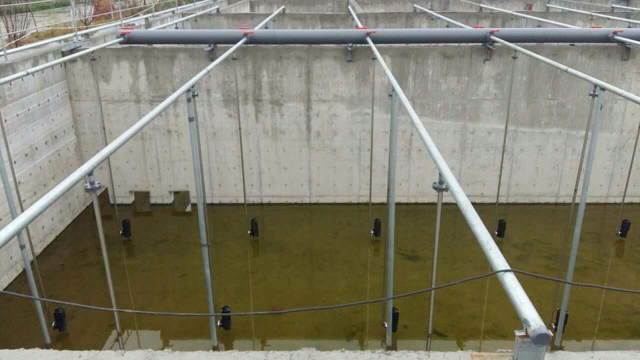 旋流曝氣器,又稱旋流剪切曝氣器。產品材質一般有PP,ABS,尼龍66等。結構上均為筒式結構,沒有活動部件牢固可靠,壓縮空氣經過曝氣器噴嘴高速進入內部,經過改變方向噴出通過內部擾流裝置將大氣泡破碎為小氣泡。該結構空隙大同樣能產生微小氣泡,不易堵塞免維護壽命長于微孔曝氣。同時可以滿足污水廠不停水改造曝氣系統,節省了清池時間和費用,長時間使用可以減少污泥量,降低曝氣風機能耗,減輕池底污泥的厭氧狀態。